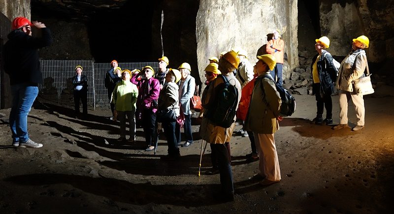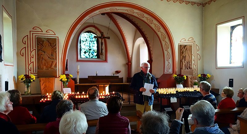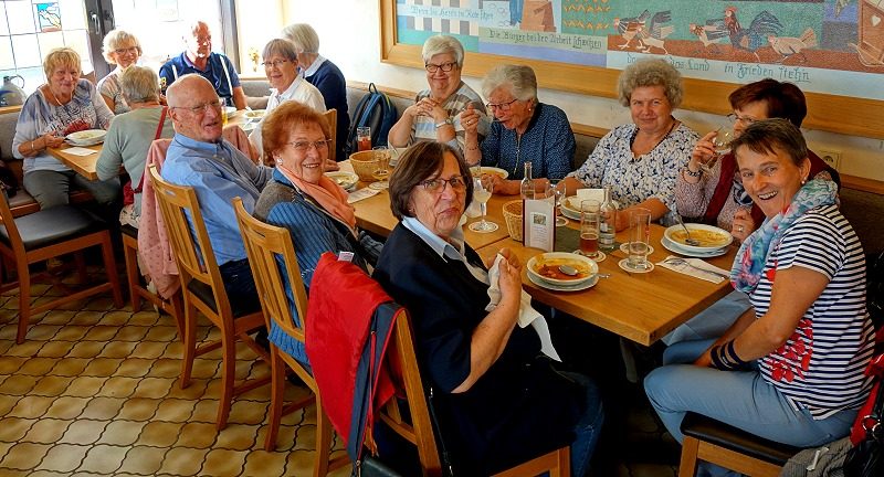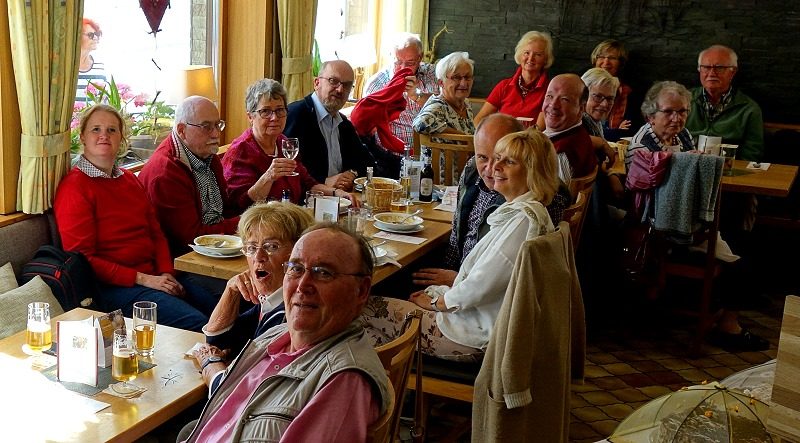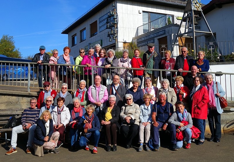 Ein herbstlicher Chorausflug führte uns in die schöne Vulkaneifel. An diesem erlebnisreichen Tag besuchten wir die Glockengießerei Mark in Brockscheid , das Weinfelder Maar mit der Martinskapelle und das Vulkanmuseum Lava-Dome in Mendig. Hier ging es 32 Meter unter die Erde in einen der vielen historischen Lavakeller, ungemein beeindruckend, wobei ein aktuelles Singverbot bestand. Eine an der Decke bereits überwinternde Fledermaus durfte in ihrem Schlaf nicht gestört werden, und dem entsprachen wir doch gerne. Wir erfuhren, dass in der unterirdischen Kühle der Keller auf einer Fläche von fast 3 Quadratkilometern im 19. Jahrhundert 28 Brauereien ihr Bier brauten. Damit waren wir beim Thema und steuerten nach 150 Treppenstufen aufwärts gleich das oberirdische urige Vulkan-Brauhaus an – zum Abschluss und geselligen Höhepunkt eines wundervollen Tages, den uns vor allem unser „Ausflugs-Team“ Anita Weyler und Resi Dick beschert hatte.