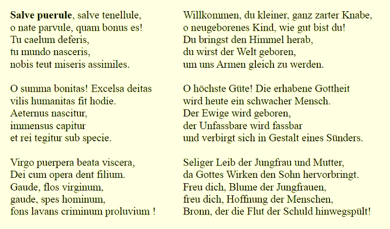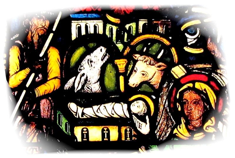 Abb. oben: Weihnachtfenster im Kölner Dom; Übersetzung: Stefan Arentz; Tonaufnahme: "Salve puerule" (M.A.Charpentier), Kirchenchor St. Joseph Thomasberg ©2002