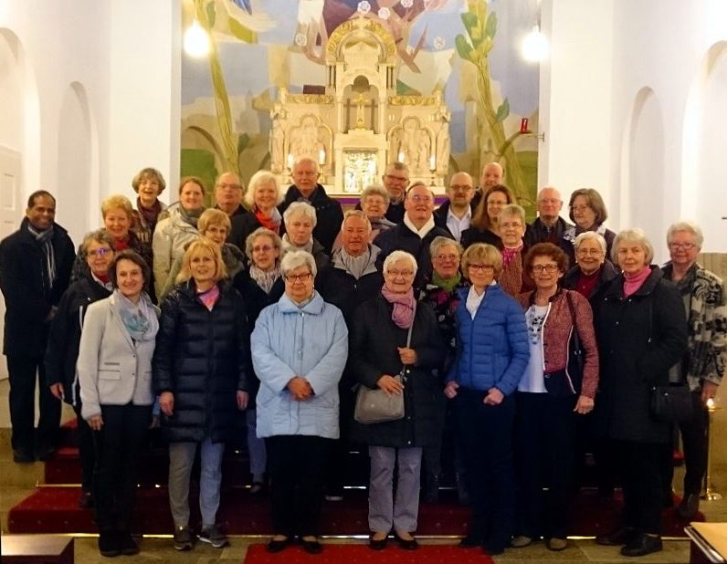 Als Pater John in der Eudenbacher Pfarrkirche St. Mariä Himmelfahrt eintraf, um den Sonntagsgottesdienst zu zelebrieren, freute er sich, uns dort anzutreffen – wie die Messbesucher, die wir mit unserem Singen überraschten.