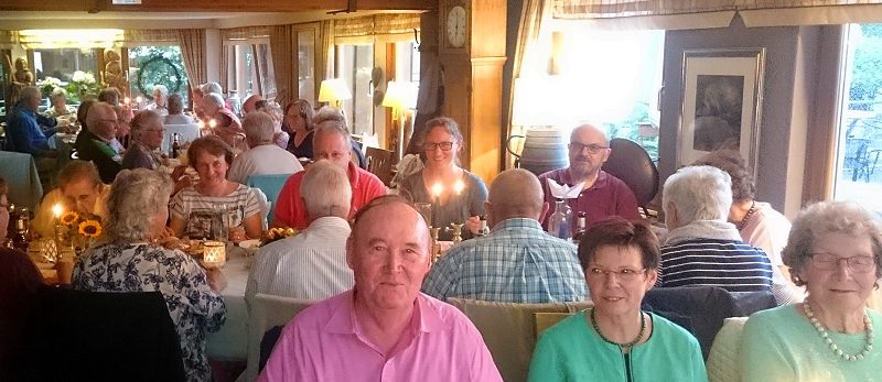 Den letzten Probeabend vor der Sommerpause verbrachten wir in dem gemütlichen Gasthaus auf dem Ölberg. Regenwolken konnten uns nichts anhaben, und wir genossen den Sonnenuntergang. Uns freute, dass auch einige unserer mittlerweile inaktiven Chormitglieder unserer Einladung auf den höchsten der sieben Berge gefolgt waren. So wurde es ein sehr familiäres Beisammensein.